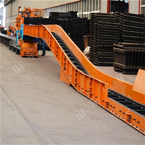 刮板轉(zhuǎn)載機是一種可以縱向整體移動的重型刮板輸送機,其長度較小,便于隨著采煤工作面的推進和帶式輸送機的收縮而整體移動。轉(zhuǎn)載機安裝在采煤工作面運輸巷中,與可伸縮帶式輸送機配套使用,同工作面刮板輸送機銜接配合順槽用刮板轉(zhuǎn)載機有軋制中部槽組裝式和整體組焊箱式結(jié)構(gòu)兩種,主要用于綜合機械化采煤,在長壁工作面刮板輸送機和順槽可伸縮皮帶機之間起轉(zhuǎn)載輸送煤炭的作用。使用轉(zhuǎn)載機后,可以避免順槽可伸縮皮帶機機尾的頻繁移動,從而保證工作面生產(chǎn)的順利進行。刮板轉(zhuǎn)載機主要應(yīng)用于高產(chǎn)、高效綜合機械化工作面順槽轉(zhuǎn)載輸送煤炭。它是由中部槽、鏈條、刮板及牽引系統(tǒng)組成。