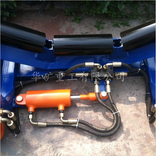 液壓調(diào)正裝置能夠自動(dòng)檢測(cè)皮帶跑偏并予以調(diào)整,使皮帶始終運(yùn)行在設(shè)定的范圍之內(nèi)。 使用全自動(dòng)液壓調(diào)正裝置能夠消除皮帶機(jī)因安裝不準(zhǔn)、運(yùn)轉(zhuǎn)不靈、物料沖擊、負(fù)荷變化、皮 帶斷面間伸長(zhǎng)率不均等因素造成的皮帶跑偏。 液壓調(diào)正裝置不需電源、自動(dòng)調(diào)整、結(jié)構(gòu)簡(jiǎn)單、性能可靠、安裝方便??梢栽谌魏螑毫?/span> 環(huán)境下工作:不怕水、不怕粉塵、不怕物料撞擊,不損傷皮帶。液壓調(diào)正裝置是由檢驅(qū)輪、油泵、復(fù)合油缸、油管總成、固定機(jī)架構(gòu)成。當(dāng)皮帶運(yùn)行跑 偏時(shí),皮帶與檢驅(qū)輪接觸,檢驅(qū)輪帶動(dòng)油泵旋轉(zhuǎn),輸出壓力油控制驅(qū)動(dòng)油缸往復(fù)運(yùn)動(dòng),帶動(dòng) 調(diào)心托輥偏轉(zhuǎn),使調(diào)心托輥的線運(yùn)動(dòng)方向與皮帶的運(yùn)動(dòng)方向形成一個(gè)夾角,產(chǎn)生的摩擦力驅(qū) 動(dòng)皮帶,使皮帶始終在設(shè)定的范圍內(nèi)運(yùn)行,從而避免皮帶跑偏造成散料及皮帶與皮帶機(jī)機(jī)架 摩擦撕帶,達(dá)到保護(hù)皮帶機(jī)正常運(yùn)行之目的。