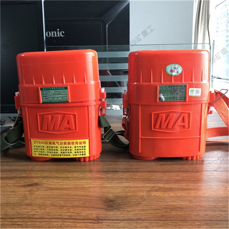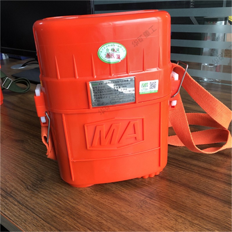 壓縮氧自救器又叫隔絕式壓縮氧自救器,是以高壓壓縮氧氣作為氧氣源的可重復使用的自救逃生器材,主要在煤礦或普通大氣壓的作業(yè)環(huán)境中發(fā)生有毒有害氣體突出及缺氧窒息性災害時使用。人體呼吸系統(tǒng)內(nèi)部與外界隔絕,供遇險人員快速自救逃生時使用。具有重量輕、體積小、呼吸舒適和攜帶方便等特點。根據(jù)防護時間有15、30、45min幾種規(guī)格。