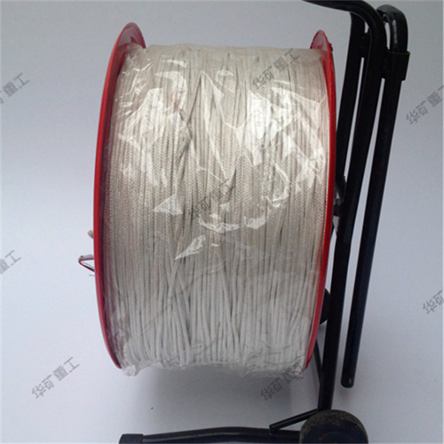 礦用引路線是由發(fā)光絲、玻璃纖維絲、面紗、阻燃雙股金屬芯編織而成。經可見光蓄光后黑暗中自動持續(xù)發(fā)光10小時以上。具有自發(fā)光、防火、抗拉強度高等特點。廣泛用作礦山救護隊員井下作業(yè)救護時探察、相互間的聯(lián)絡、確定人員方位、引導方向及用作通信電話線等。