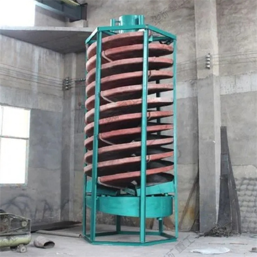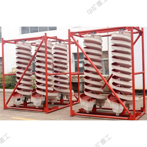 螺旋溜槽設(shè)備的主體部件,由玻璃鋼制成的螺旋片用螺栓連接而成。在螺旋槽的內(nèi)表面上涂以耐磨襯里,通常是聚氨脂耐磨膠或摻以人造金鋼砂的環(huán)氧樹脂。在螺旋溜槽的上部有分礦器和給礦槽,下部有產(chǎn)物截取器和接礦槽。整個設(shè)備用鋼框垂直地架起。螺旋溜槽的工作特點是在槽的末端分別截取精、中、尾礦,且在分選過程中不加沖洗水。